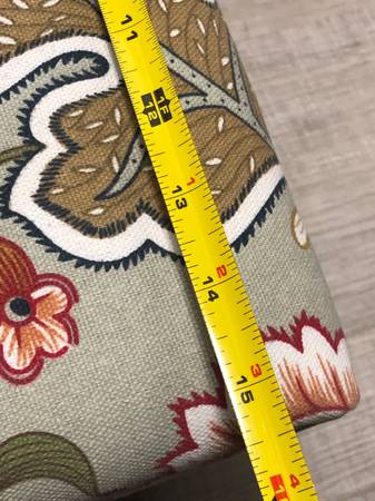 Preowned Good condition Size 15” Footrest Small part of the inside cardboard is peeled Pet hair and smoke free item
