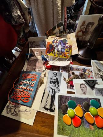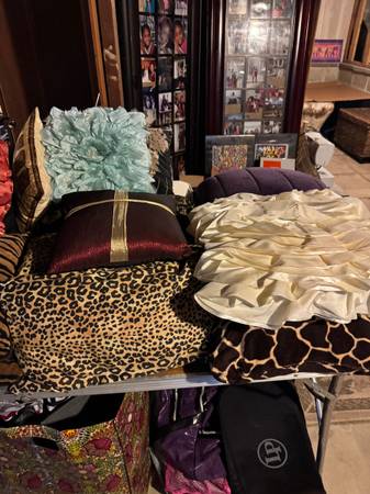 BLACK HERITAGE COMMEMORATIVE BINDERS- EACH HAVING HISTORY ABOUT 50 DIFFERENT PEOPLE, LADIES HIGHEND CLOTHING INCLUDING A MINK AND LEATHER, LADIES SHOES, LADIES PURSES, LADIES HATS, LADIES JEWELRY, ASSORMENT OF LINENS, LARGE SELECTION OF PILLOWS, FRAMED ART AND PAINTING, WOOD AND REED END TABLES, DESIGNER STOOLS, FOLDERS OF CD'S, LADY MANEKINS, KENMORE DISHWASHER, SONY TV, YAMAHA DGX-500 KEYBOARD, WALL MIRRORS EVERYWHERE, HARDBACK BOOKS, OPRAH FAVORITE THINGS ARE A TOASTER OVEN, SPICE JARS, AND AMAZON #5, WALNUT CORNER SHELF, SEWING CHEST, VINTAGE BOARD GAMES, INDIVIDUAL DRUMS, AFRICAN ART, KITCHEN POTS AND PANS, NINJA BLENDER, PYREX BOWLS, DECOR OTTOMANS, WALNUT ARMOIRE, KING SIZE WALNUT BED WITH MATTRESS, KENMORE SEWING MACHINE, AFRICAN STATUES, OPTIMUS SPEAKERS, CANDLE HOLDERS, STANDING BUTLER, TABLE LAMPS, NIC NAC SHELVES, CANDLELABRA, AND A LOT MORE