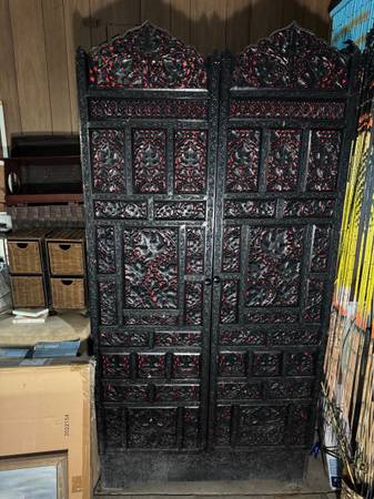 LARGE ORNATE ORIENTAL CABINET, HUNDREDS OF BOOKS, YARD TOOLS, BOSE STEREO SYSTEM WITH SPEAKERS, WEEDEATERS, STAINLESS STEEL POTS, BRENTWOOD MIXER, CUISNART WAFFLE MAKER, HOOVER VAC, EURO-PRO DEEP FRYER, WERNER LADDER, HAWAIIAN BEADED CURTAINS, PUNCH BOWL SET, MALITTA ONE AND ONE, 3 BLACK TRUNKS, PYREX, LOSTREMAN MINI REFRIGERATOR, CAST IRON COOKWARE, WICKER BASKETS, CAMPING CHAIRS, COLEMAN COOLER, HP PRINTER, PICTURE FRAMES, PIZZA BAKING STONE, GAS CANS, COLLECTOR DOLLS, 2 BICYCLE CAR RACKS, WORLD GLOBE, FRAMED ARTWORK, DVD PLAYER, AND A LOT MORE