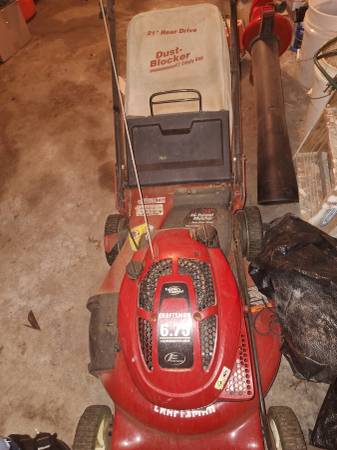 Basement/garage - small table with 2 chairs, Tupperware, Pampered Chef, NIB small appliances, patio decor, patio furniture, sweepers, Weber Grill, lawn mower, yard tools, fountain, and much, much more.