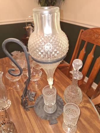First Floor - Lenox, Crystal, Silver plate, bar card with all equipment, dinning table with 6 chairs, area rugs, Tupperware, cookware, some NIB cookware, knives, flatware, dishes, coffee press, bar items, vintage entertaining items, china closet, artwork, small kitchen island, variety of small appliances, bakeware, pyrex, living room furniture, stereo, coffee tables, end tables, accent tables and much, much more.