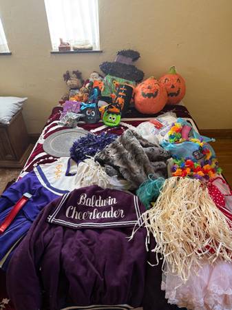 Holiday decor and 80s/90s clothes perfect for putting together a party look for Halloween.