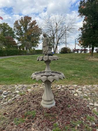 There is a large collection of concrete and plaster statues throughout the yard. Outdoor furniture, gas grill, and so much more!