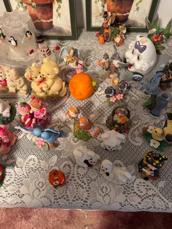5 PIECE BEDROOM SET INCLUDING , 2 DRESSERS, 2 DESKS, HUTCH, HITCHCOCK CHAIRS, VINTAGE WEDDING DRESS, OTHER MENS AND WOMENS CLOTHES, VINTAGE BOOKCASE HEADBOARD WITH FULL BED AND LINEN, PORCELAIN FIGURES, SOME CHRISTMAS DECOR, HARDBACK BOOKS, FLORAL ARRANGEMENTS, MAPLE NITE STAND,ELEGANT BEDROOM CHAIRS, MINITURE TEA POTS, MINT UPHOLSTERED LOVESEAT, PLANT STAND, PORCELAIN VASES, POTTERY TEA POTS, CLAY ANIMALS, DRESSER ITEMS, LADIES PURSES, DECOR PILLOWS, LADIES BOOTS, STUFFED ANIMALS, PORCELAIN DOLLS, BOOKCASES, KNEEHOLE DESK, TABLE LINENS, AND A HUNDRED OTHER THINGS TO BUY