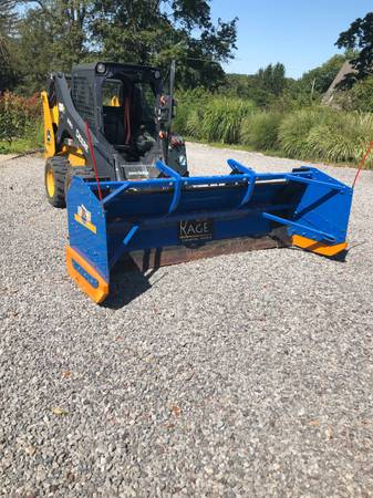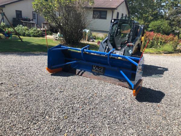 8’ Kage Inovation snow pusher Power angle with removable box Lightly used Always stored under cover Universal skid steer mount Cash only Local delivery available No email please