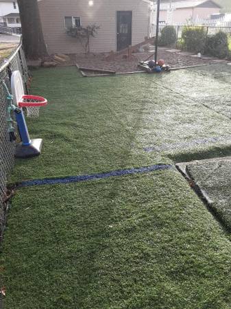 ARTIFICIAL Green SHAG Sports TURF- (used) great condition and sold by 6 foot or 7 foot widths, some 4 ft. widths. Various lengths- Short to long Shag while large quantity is available. in Butler,Pa. Great for Play areas, Dog areas. Total maintenance free and durable- Beautiful enhancement to your property SMALL or LARGE. Pics are an example of a city rear lawn with large dog by one of our employees. we prefer not to install or deliver. Sections are very HEAVY. FOB Butler. $2.00 per sq. ft. or less. must buy by the sections available 6 ft. x various lengths. Whatever length u buy, SOLD BY THE SQ.FT. $100. minimum purchase. no comparison to the cheap thin stuff sold at Sams Club. Ask about a new disc. offer we are implementing. New shipment "just in" from a Soccer Field and a Football Field" renovation.$2.00 per sq. ft. less 20% or more if u purchase turf with FIELD MARKINGS on. For phone and address see stirlinglandscape.com by appt. only. Use for under Rear Decks and many other areas. for address and phone see our website: stirlinglandscape.com