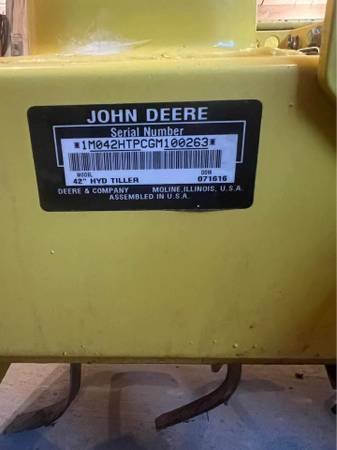 It's available John Deere 42 inch hydraulic rototiller attachment in like-new condition. Attaching parts to fit X580-590 series tractors are included. $1200 cash