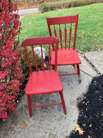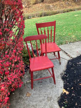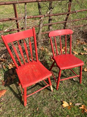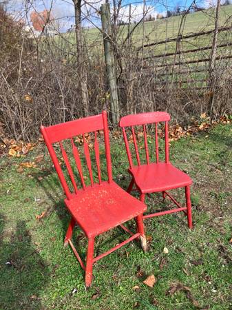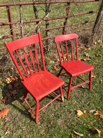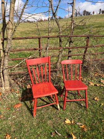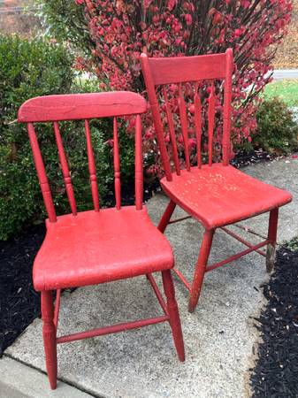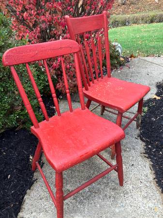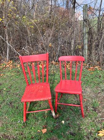 Pair of Vintage Wood Chairs - πͺ πͺ RUSTIC & Chippy!! 2/$40 or $25.00 each! Each chair is different but similar! Great for outside porch decor! π. CASH ONLY PLEASE. Driveway pickup near FINLEYVILLE, PA 15332. (Nottingham Township)