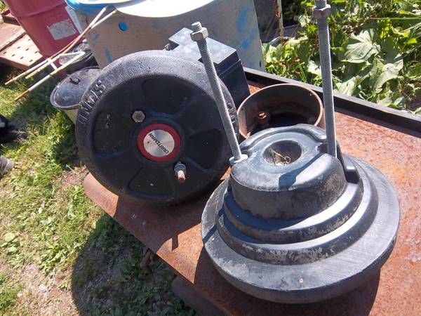 TWO LAWN TRACTOR WHEEL WEIGHTS FIT MOST LAWN TRACTORS GREAT SHAPE $40. OR BEST OFFER ( seven 24-five41-four349 ) )