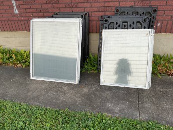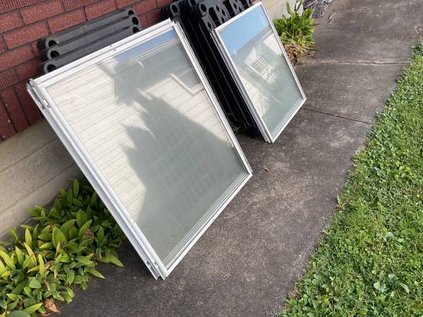 Ideal windows for hot bed growing box. These aluminum framed single pane windows are heavy duty and in new condition. Only $5 each.