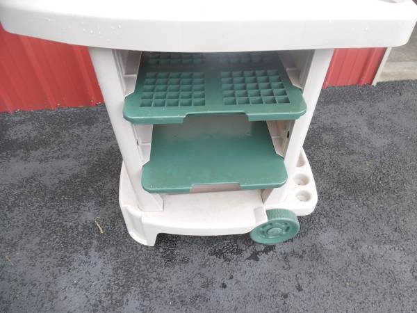Suncast Planting/Garden Cart- In nice condition with 2 removable shelves and a removeable bin on the top. Pick Up Only in Ligonier, Cash Only