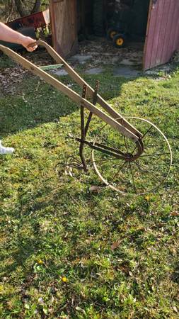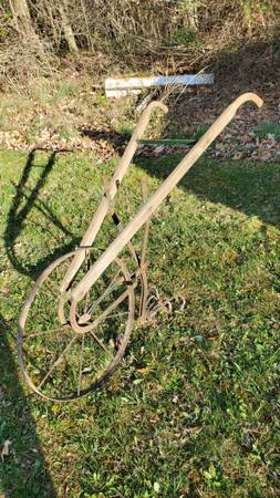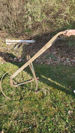 Antique Steel Wheeled Garden Cultivator/Push Plow Old rustic