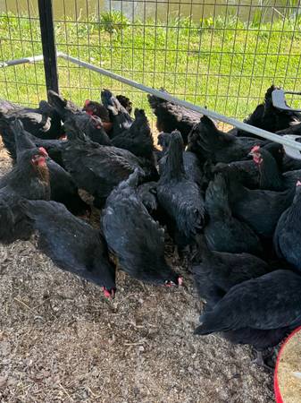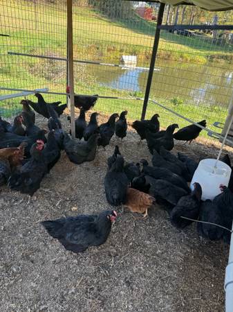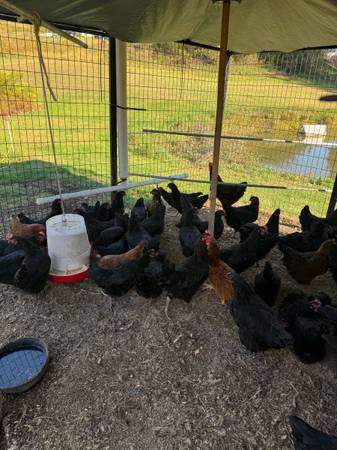 Chickens 18 week old Aquilas pullets. Brown egg layers. Some starting to lay. Mostly black ones but a few reds. $ 16 each. If interested call or text 7two4-503-5415 Chickens chicken hens hen poultry