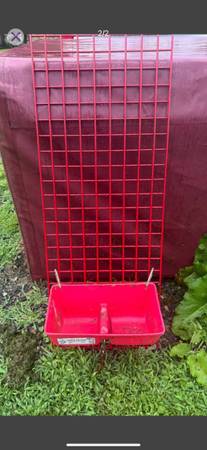 Red coated wire panels. 18 inches x 36 inches. Each square is 1.5 inches. Heavy duty and brand new. Shelving, panels for livestock to hang feeders or water at fairs, hay rack. Lots of possibilities. $8 each. Located in Prosperity Pa. If interested call or text 7two4-503-5415