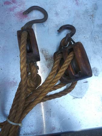 Vintage double Barn pulleys with original rope from feed store Barn.Great Primitive Decor RUDUCED $75.00