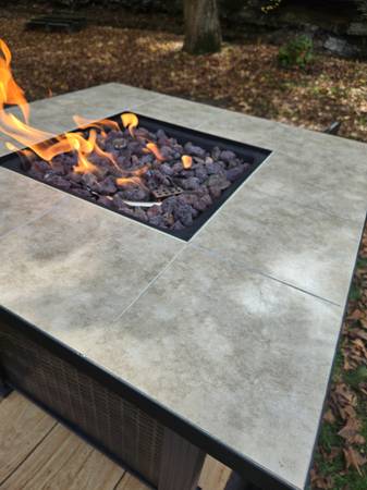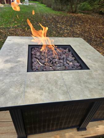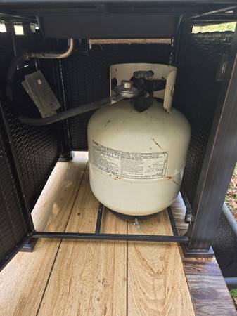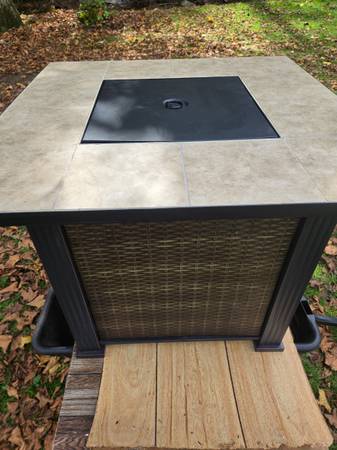 Hi. Decided to sell this like new LP fire pit. Please see photos. Loaded on a wagon for easy loading. Cash only. Thanks for looking.