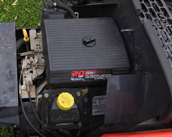 Kubota ZG20 commercial zero turn with 625 hours in very good condition. This tractor was not used commercially and was very well maintained. It is powered by a 20 hp gas engine. The 48" deck is solid and quiet. The deck has a hydraulic lift. The tires and seat are very good, and it has a new battery. $1900 cash.