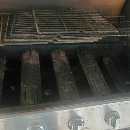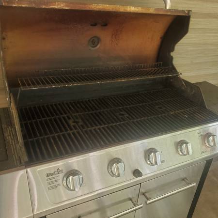 Used Char Broil grill, 4 burner plus sear and a side burner, propane, needs burner assemblies, sear is functional, grates are good, kept under roof for its entire life, used up till a month ago until we switched to natural gas, $25, $35 w an empty propane tank
