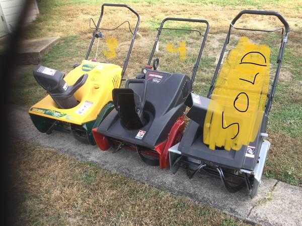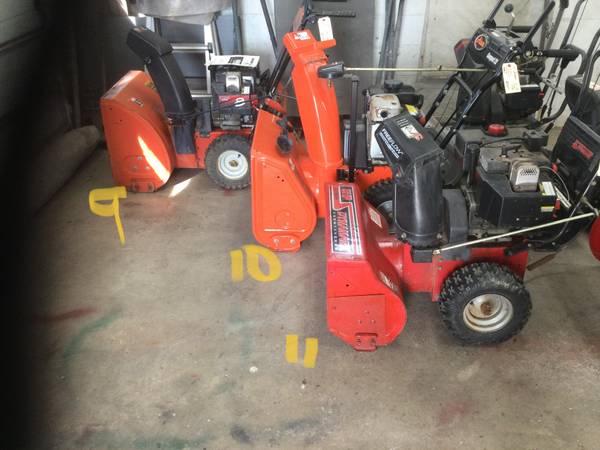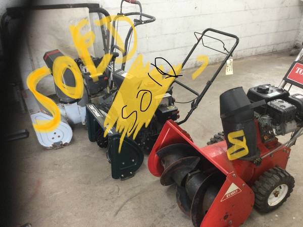 Nice selection of ready to go snowblowers- range from 21”-24”, all are (4) cycle (no mixing) some are electric start- small ones are single stage, larger ones (2) stage up to (6) speeds with reverse. Prices range from $80 and up depending upon size and condition. Check the pics, let me know what # your interested in for more info as there’s too much to list. #’s will be eliminated when sold, no holds.