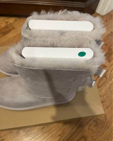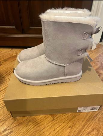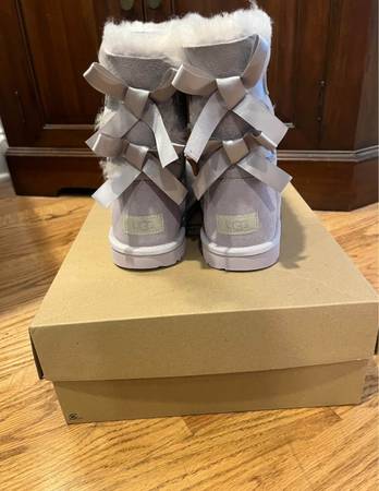 UGG SHORT BAILEY BOW PALE SMOKE SUEDE BOOTS SIZE US 4 GIRLS KIDS