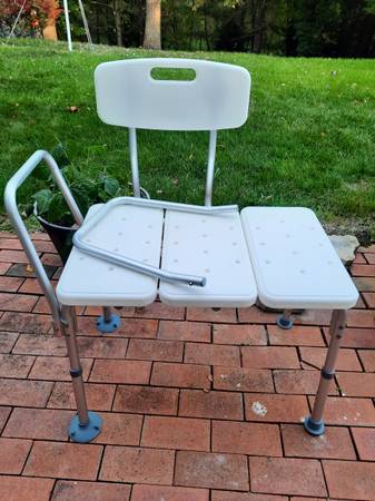 I have for sale an extra wide shower chair. Like new. Has extra handle, suction cup feet, and pin locking legs. Sturdy. Selling for $15. Seat part is 16 1/2 in. Deep, 26 1/2 in. Wide (28 1/2 in. Wide including handle) and 21 in. High from floor to seat.