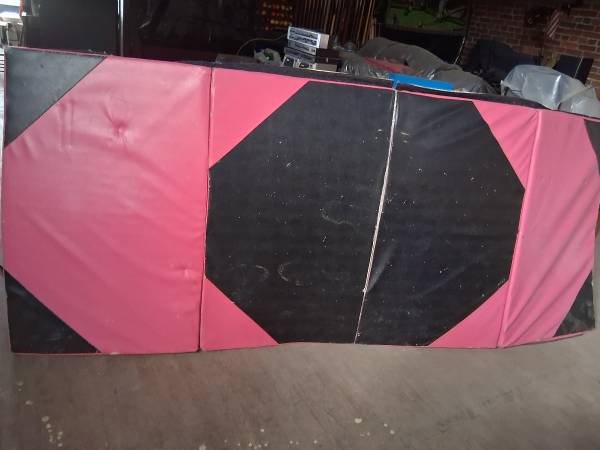 Folding yoga/exercise mat. No holes just some small scuffs on side that goes on floor. Measures 4 sections each measure 28x46 making it a total of 112x46. About 1-1/2 or 2 inches thick. Thanks