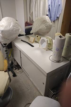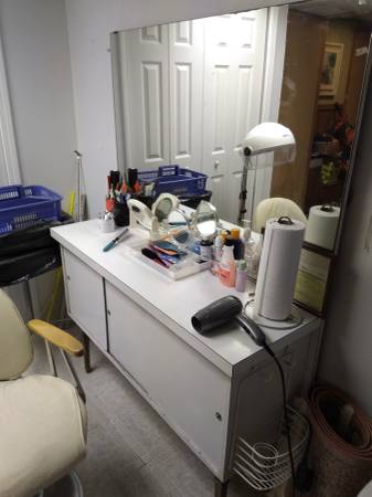Beauty Shop Equipment for Sale. Vintage compact set that would be a great starter setup for cheap. Includes: - Stylist Chair - Large Mirror with Vanity - Washing Chair - Dryer on Wheels - Curler...