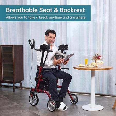 Upright New in Box Elenker Walker. 18 Pounds. Sells online for $179, asking $125 OBO. Hand Breaks, Cushion Seat and Storage Bag. Easy to Maneuver. Weight Capacity 300 lbs. Product Dimensions 28"D x 26"W x 53"H