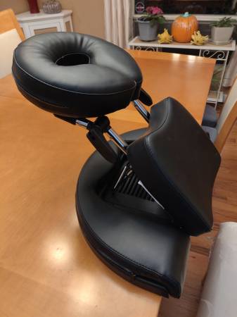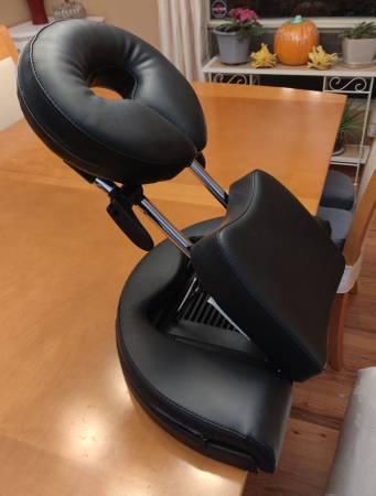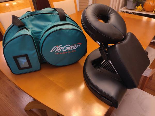 LifeGear Massage to Go adjustable tabletop neck and shoulder unit with carry bag. Unit has a face rest and featuring an adjustable chest pad, the Lifegear unit simply rests on the edge of a table or...