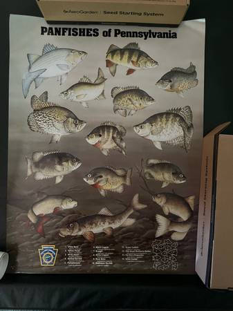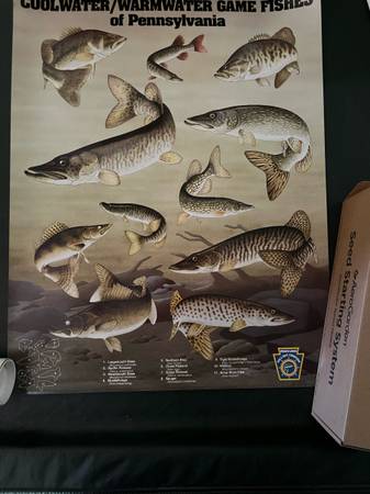 The Fish of Pennsylvania Posters by the Pennsylvania fish and boat commission is a medium-sized art piece featuring various species of fish found in Pennsylvania. With a theme centered around sports and fishing, the poster captures the essence of outdoor recreation in the state. The item height of 22 inches and width of 17 inches provide a visually appealing format for showcasing the beauty and diversity of Pennsylvania's aquatic wildlife. This poster would make a great addition to any angler's collection or as a decorative piece for those who appreciate the sport of fishing. New old stock in new condition Buy all or some $15.00 a piece or $45 for all.