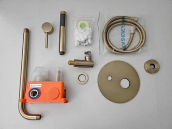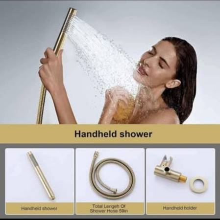 Shower Faucet Set Complete】All-metal brass construction. The mixing valve is made of solid brass with rust-free, long-life characteristics. Solid brass Rain Shower Head with silicone nozzles allows you to wipe away mineral deposits with the swipe of a finger.