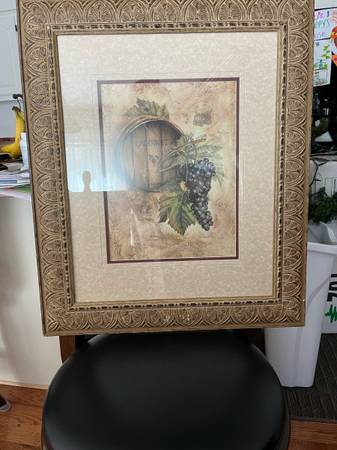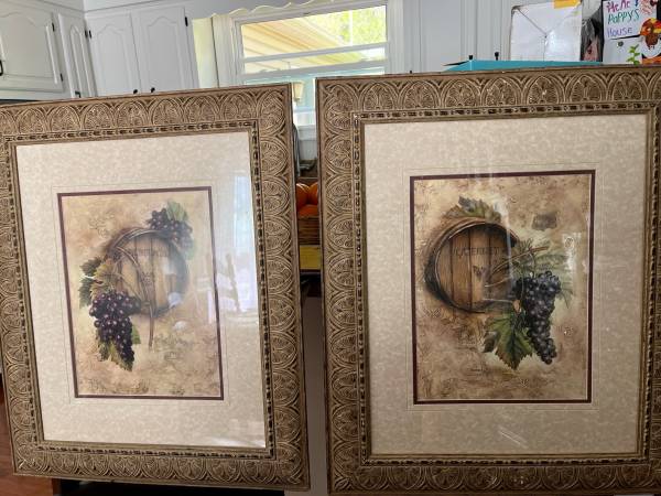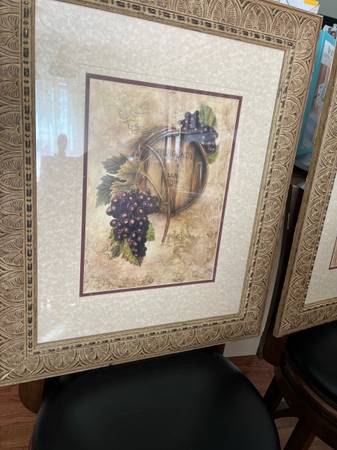 Two beautiful pictures with nice frames with glass 25 x 21 Great for a dining room, kitchen, coffee bar, wine bar area etc. Both for $20