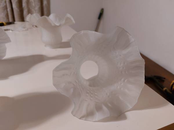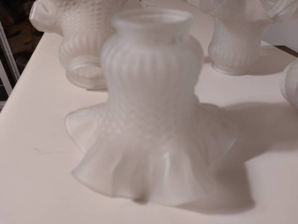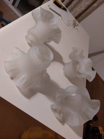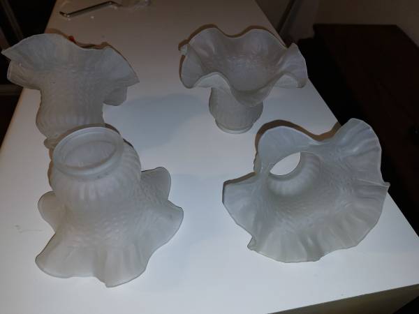 Complete set of four "flower-style" ceiling fan globes. My parents have a similiar set on their light (no fan) over their kitchen table. They are frosted. I saw no chips or cracks in any of them. If...