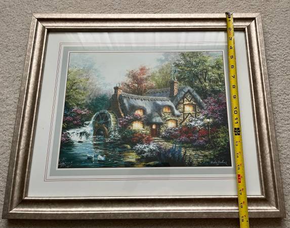 This matted and framed print by Nicky Boehm is titled, "Country Retreat" and measures 16 x 11", with an overall measurement with frame of 19 x 23". It is in excellent-like new condition.