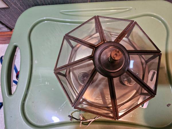 1970's antique brass and beveled glass light fixtures in very good condition . $100 FOR ALL THREE