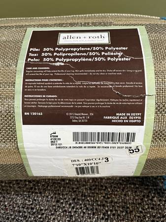allen + roth area rug. Size: 7'10" x 10'10". Polyester stain-resistant. New. $ 75.00. Call .