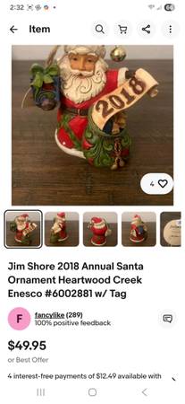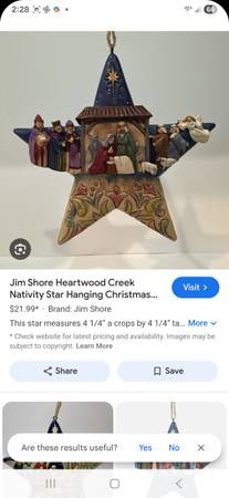 Mint condition Jim Shore 2 in boxes and one without . Mint , mint , condition ! One santa clause lights up and rotates inside , beautiful star and other santa are extremely well made all carved from wood . Very durable and not cheap . Selling as a lot only . Cash , door pick up directly on Mount Royal close to Angelo's pizza . Thanks