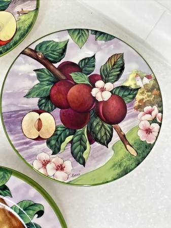 Villa d’Este Salad/Dessert Fruit Plates Apples Cherries Pears Plums Hand Painted in Italy Never Used Will Meet Locally Cash Only