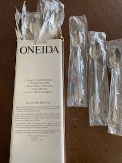 Oneida Stainless Tall Ice Tea Spoons (set of 12) NEW, still in protective plastic covers. Dishwasher safe, never needs polishing, Heavy Weight. Cash only