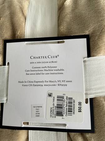 Charter Club Cozy Plush Throw Blanket Macy's 50x70 Beige New with Tags in Zippered Package