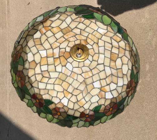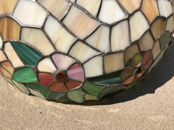 THIS GREAT LEADED SHADE WAS HANDCRAFTED IN MAINE 35 YEARS AGO AND IS WELL DONE.