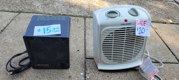 Both in great shape (White) $10 fan (Black) $15 heater/fan Located downtown Monaca