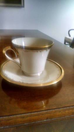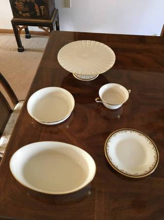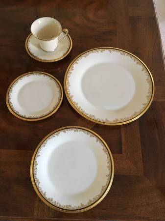 11 Place Settings Lenox Fine Bone China Eclipse Pattern pearly ivory color, gold and black trim. Each Place Setting Includes Dinner Plate, Salad Plate, Bread and Butter Plate, and Cup and Saucer. $79 per 5 Piece Place Setting. Elegant table setting for the holiday, birthday, anniversary celebration. ELEGANT!