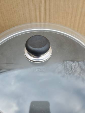 This listing is for a 13" Pyrex Titanium Aluminum Stock Pot, 1997, Made in Denmark. It is approx. 13" diameter X 6" tall. To top of lid is approx. 10" tall. Inside and lid in excellent condition. Light scorching on bottom. Excellent pre-owned condition.