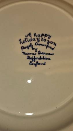1977 "A Happy Holiday To You" Royal Crownford by Norma Sherman Plate. Staffordshire England. Approx. 9" diameter. Excellent condition.