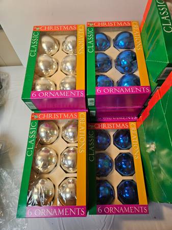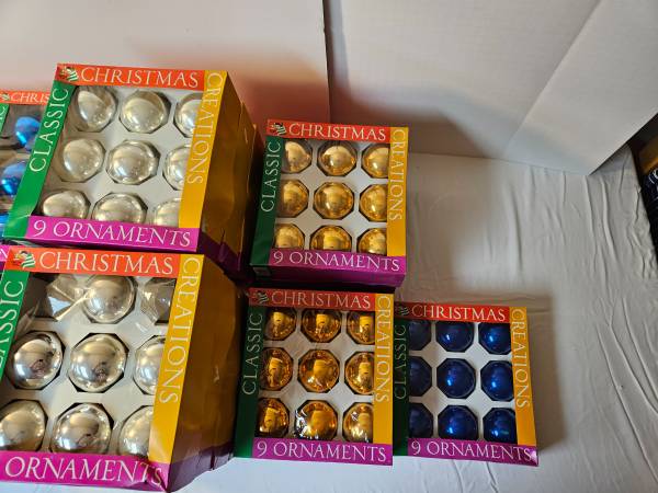 25 Packs Vintage Christmas Classic Creations Glass Ball Ornaments. Included are: 5-6 pack silver 4-6 pack blue 10-12 pack silver missing 2 balls 5-12 pack gold 1-12 pack blue The balls in the 6...