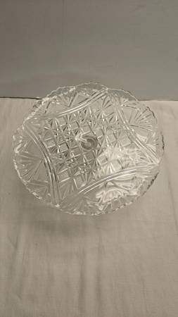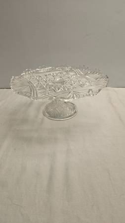 Crystal Pedestal Cake Plate. Approx. 9.5" Diameter X 4" tall. Scalloped edge. Excellent condition.