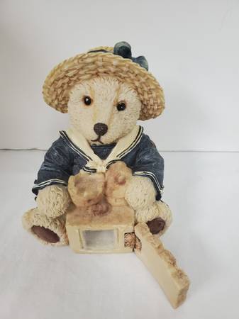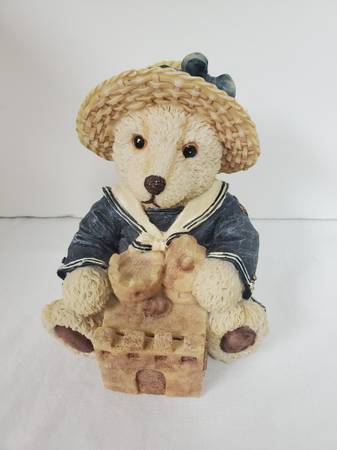 Barton's Creek Teddy Bear in Sailor Suit Bank with Sand Castle. Approx. 4.5"X4"X5" tall. Open the door in the front of the sandcastle to see your coins. Cute.