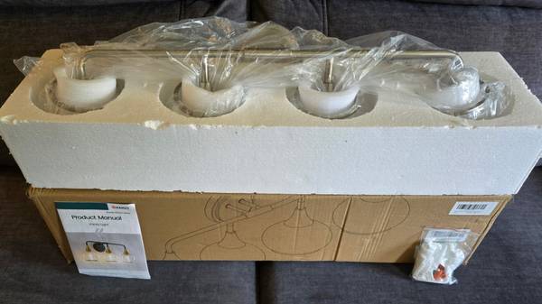 Brushed Nickel Bathroom Light Fixture 4 Lights Bathroom Vanity Lights Over Mirrors with Clear Glass Shade 30.7 inch New, never installed Amazon sells for $130