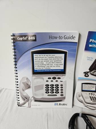 Captel 840i Landline Captioning Telephone for Hard of Hearing. Complete. I believe you must subscribe to the service. I do not have a landline to show you this item works, but I guarantee all my sales. It comes with instructions. Please Google the make and model for specs. The handset is yellowed compared to the body of the phone.